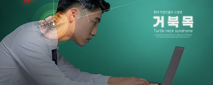 고개를 숙인 상태로 장시간동안 스마트폰을 하는 습관