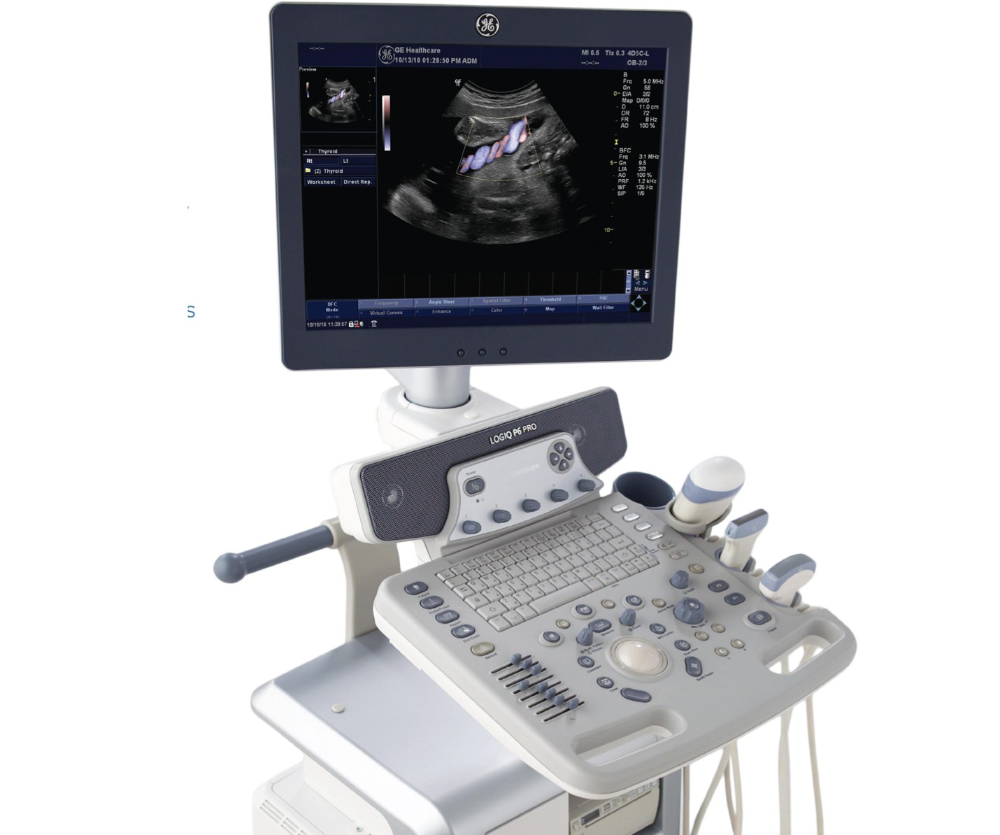 GE Healthcare 사의 초음파진단기 LOGIQ P6 PRO입니다. 다양한 프로브로 여러 병과에 사용되는 전문적인 초음파 진단 장비입니다.